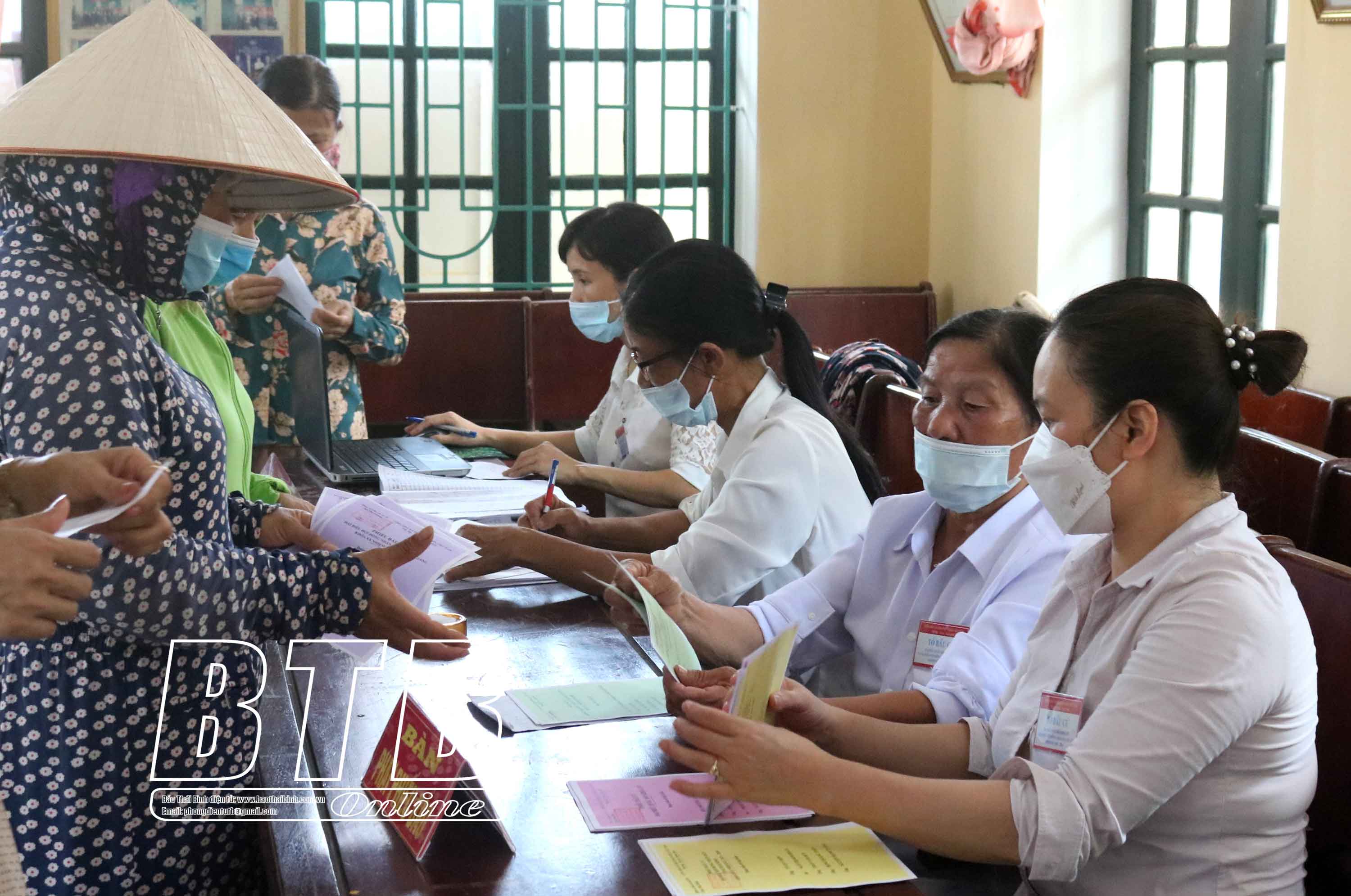 Cử tri xã Tây Giang, huyện Tiền Hải đi bầu cử từ sáng sớm.