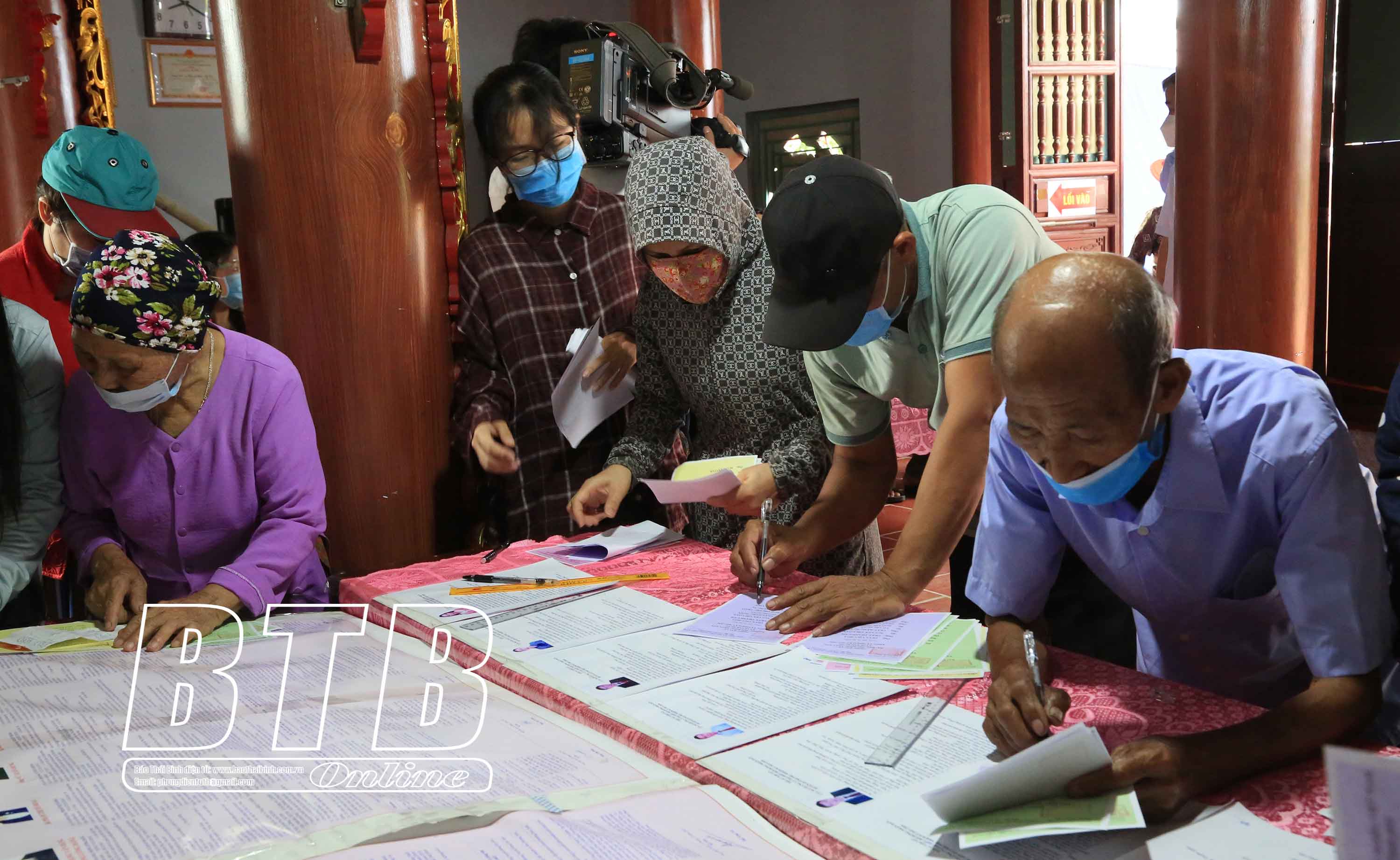 Cử tri khu vực bỏ phiếu số 5, xã Quỳnh Hưng, huyện Quỳnh Phụ thực hiện quyền, nghĩa vụ công dân.