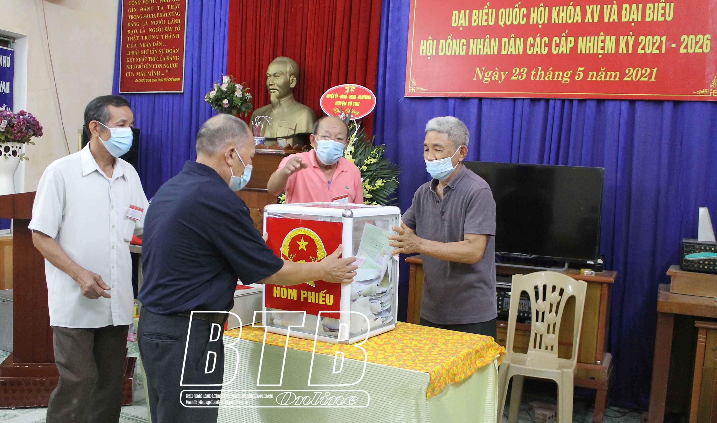 Theo báo cáo của Ủy ban bầu cử huyện Vũ Thư, trong ngày 23/5, toàn huyện có 215/215 tổ bầu cử đã tổ chức thành công cuộc bầu cử đại biểu Quốc hội khóa XV và đại biểu HĐND các cấp nhiệm kỳ 2021-2026; trong đó có 203 khu vực bỏ phiếu nơi công cộng và 12 khu vực bỏ phiếu nhờ nhà dân.