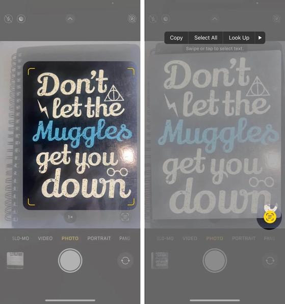 Bây giờ, bạn chỉ cần mở camera trên iPhone, hướng máy đến đoạn văn bản cần chụp, sau đó bấm vào biểu tượng Live Text (văn bản trực tiếp) ở góc phải bên dưới màn hình. Lúc này, iPhone sẽ tự động trích xuất nội dung văn bản trên hình ảnh, người dùng có thể nhấn vào để sao chép, tìm kiếm hoặc dịch thuật.