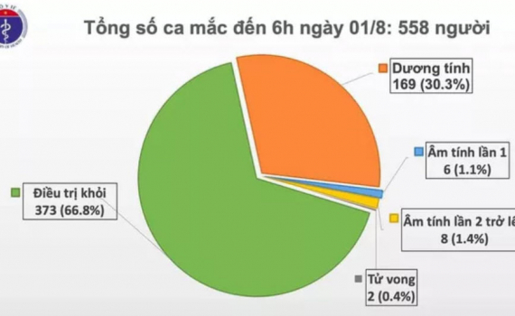 Theo Ban Chỉ đạo Quốc gia Phòng chống dịch COVID-19, tính đến 6h ngày 1/8, Việt Nam, có tổng cộng 558 ca mắc COVID-19, trong đó 302 ca nhiễm nhập cảnh được cách ly ngay.