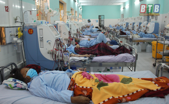 Bệnh nhân chạy thận nhân tạo tại Bệnh viện Đa khoa tỉnh thực hiện nghiêm các quy định phòng, chống dịch của bệnh viện.