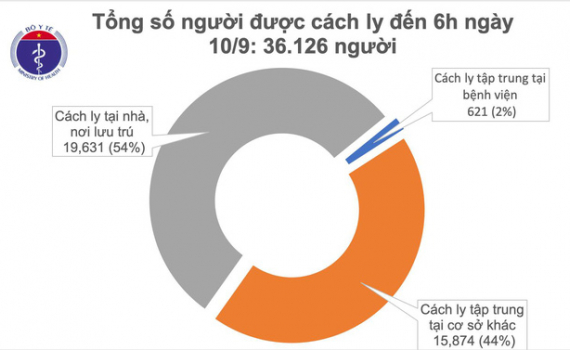 - Tính từ 18h ngày 9/9 đến 6h ngày 10/9: 0 ca mắc mới, trong đó có 0 ca nhập cảnh được cách ly ngay.