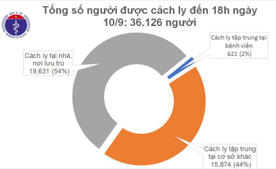- Tính từ 6h đến 18h ngày 10/9: 0 ca mắc mới, trong đó có 0 ca nhập cảnh được cách ly ngay.