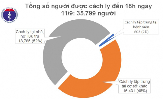 Số người cách ly: Tổng số người tiếp xúc gần và nhập cảnh từ vùng dịch đang được theo dõi sức khỏe (cách ly): 35.799, trong đó: