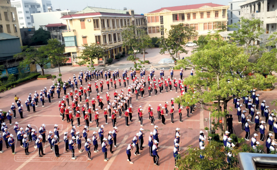 Đồng diễn thể thao phòng, chống tác hại của thuốc lá tại Trường THCS Tây Sơn (thành phố Thái Bình).