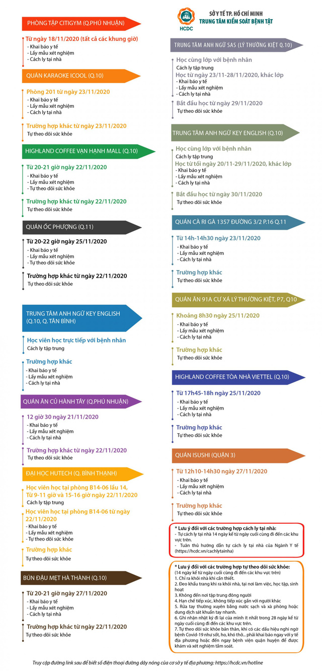 Sáng 4/12, Trung tâm Kiểm soát bệnh tật TPHCM tiếp tục cập nhật hướng dẫn phòng bệnh ở những nơi các bệnh nhân 1342, 1347, 1348, 1349 từng đến.
