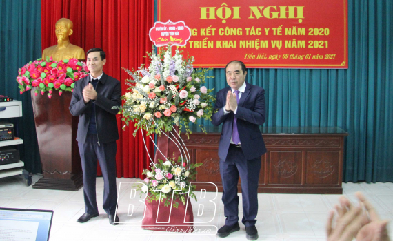 Lãnh đạo huyện Tiền Hải tặng hoa chúc mừng.