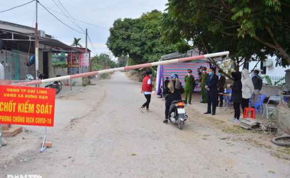 Chốt kiểm soát tại thôn Kim Điền, xã Hưng Đạo (Chí Linh, Hải Dương) . Ảnh: Dân trí