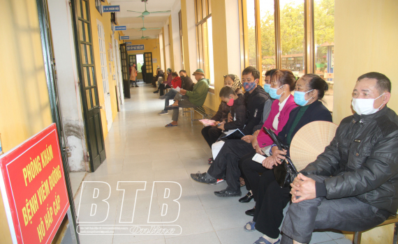 Người dân chấp hành nghiêm việc đeo khẩu trang phòng, chống dịch Covid-19 khi đến khám bệnh tại Bệnh viện Đa khoa huyện Đông Hưng.