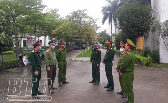 Lực lượng Công an, quân sự thành phố Thái Bình phối hợp bảo đảm an ninh tại khu cách ly tập trung Trường Đại học Thái Bình, tháng 4/2020. Ảnh Tư liệu