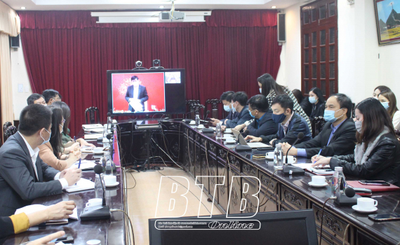 Các đại biểu dự hội nghị trực tuyến tại điểm cầu Thái Bình.