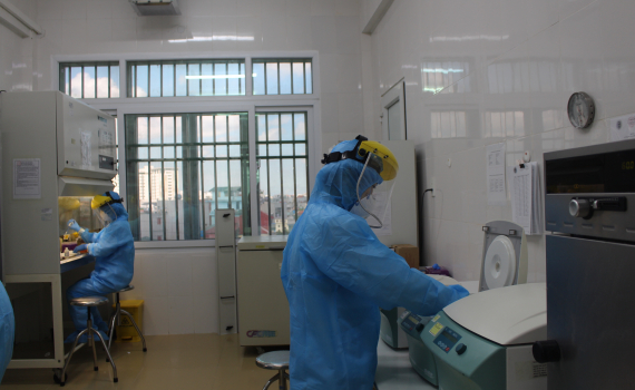 Xét nghiệm SARS- CoV- 2 tại Trung tâm Kiểm soát bệnh tật tỉnh.