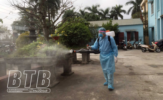 Phun khử khuẩn tại Trung tâm y tế huyện Quỳnh Phụ