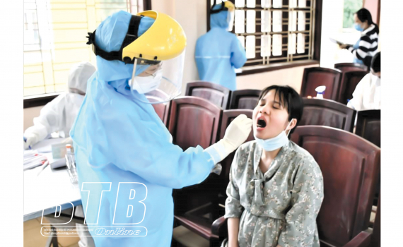 Lấy mẫu xét nghiệm SARS-CoV-2 cho công dân Việt Nam từ nước ngoài về cách ly tập trung tại Trung đoàn 568.