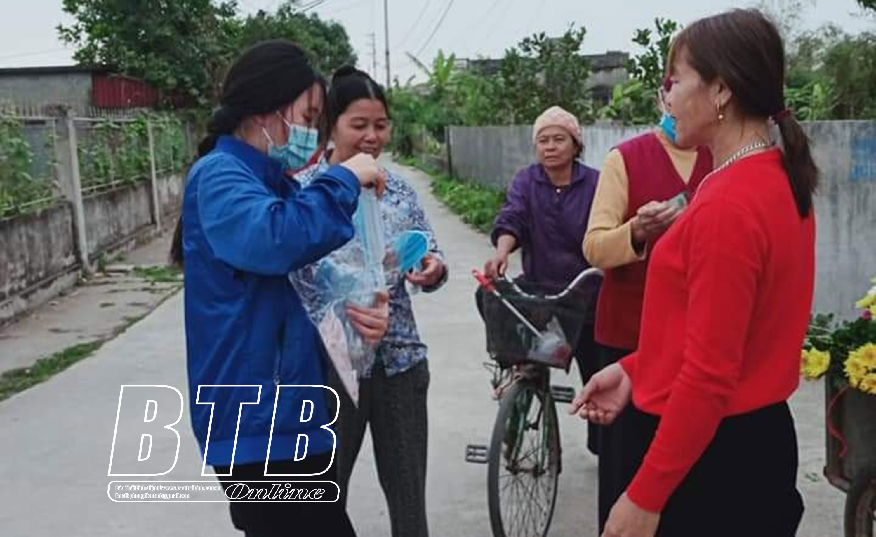 Đoàn viên thanh niên huyện Kiến Xương phát khẩu trang y tế miễn phí cho người dân phòng chống dịch Covid-19.