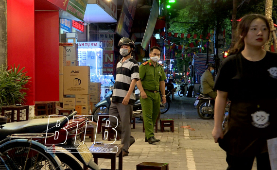 Lực lượng chức năng ra quân dọn dẹp hàng quán lấn chiếm vỉa hè, phòng chống dịch Covid-19.
