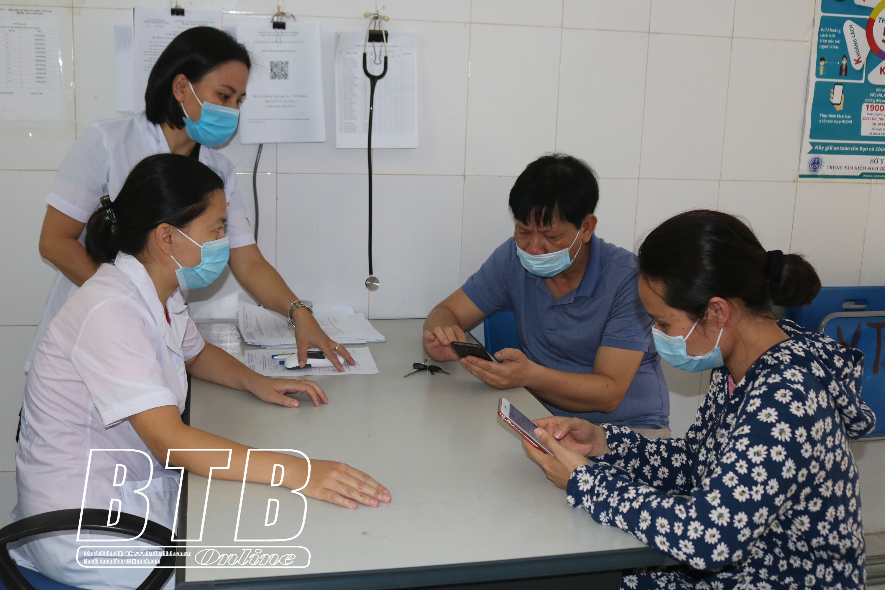 Nhân viên Trạm Y tế phường Trần Hưng Đạo hướng dẫn người dân khai báo y tế điện tử sau kỳ nghỉ lễ.