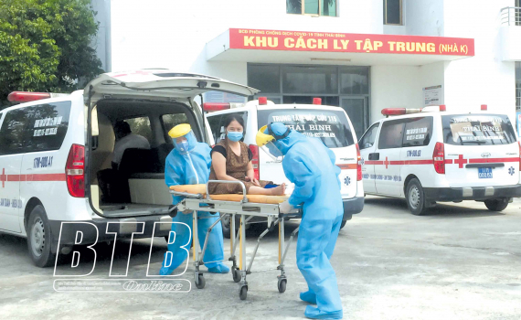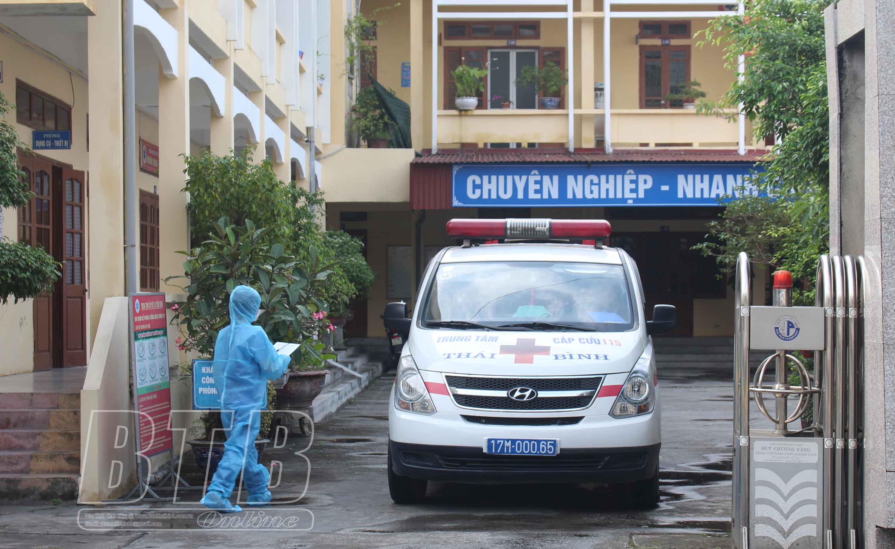 Bệnh nhân được vận chuyển từ Bệnh viện Đa khoa tỉnh tới khu cách ly tập trung tại Trường Đại học Thái Bình, ngày 17/5/2021.
