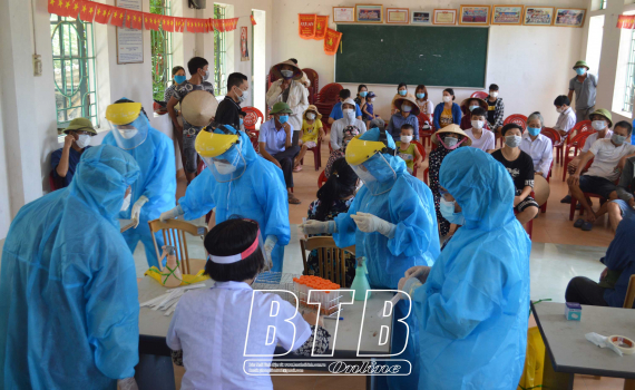 Khẩn trương lấy mẫu xét nghiệm cho người dân khu vực phong tỏa thôn Thanh Lâm (xã Đông Minh, huyện Tiền Hải)