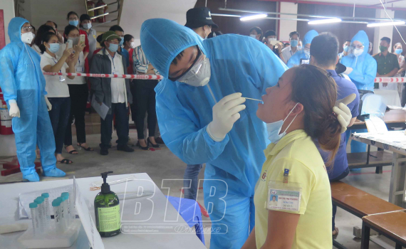 Lấy mẫu xét nghiệm cho toàn bộ công nhân trong dây chuyền sản xuất có ca F0.