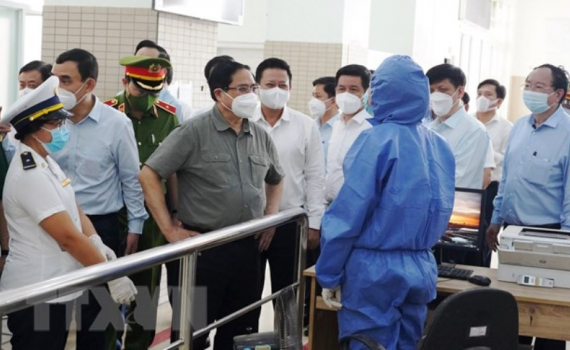 Thủ tướng Phạm Minh Chính kiểm tra công tác phòng, chống dịch Covid-19. (Ảnh: TTXVN).