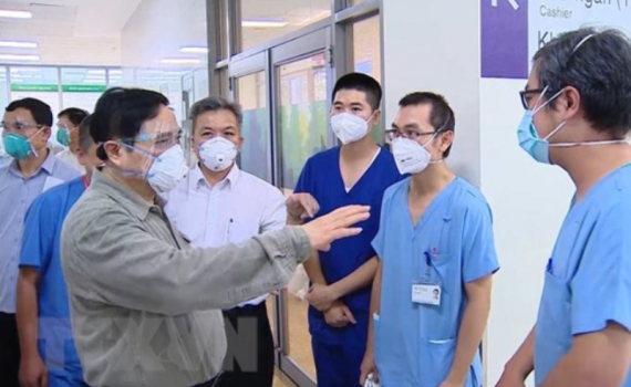 Thủ tướng Chính phủ Phạm Minh Chính thăm hỏi, động viện đội ngũ y, bác sĩ tại Bệnh viện Hồi sức cấp cứu Bình Dương.