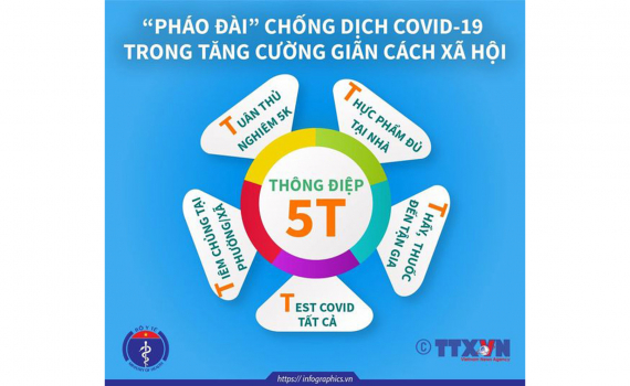 Theo đó, thông điệp "5T" - "Pháo đài" chống dịch Covid-19 trong tăng cường giãn cách xã hội, gồm:
