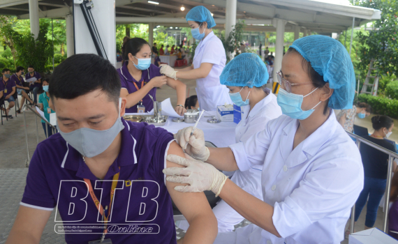 Công nhân, người lao động được tiêm vắc-xin phòng Covid-19.
