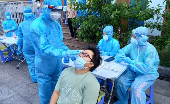 Nhân viên y tế tỉnh Thái Bình hỗ trợ TP Hồ Chí Minh trong công tác lấy mẫu xét nghiệm sàng lọc Covid-19 cho người dân quận Tân Phú
