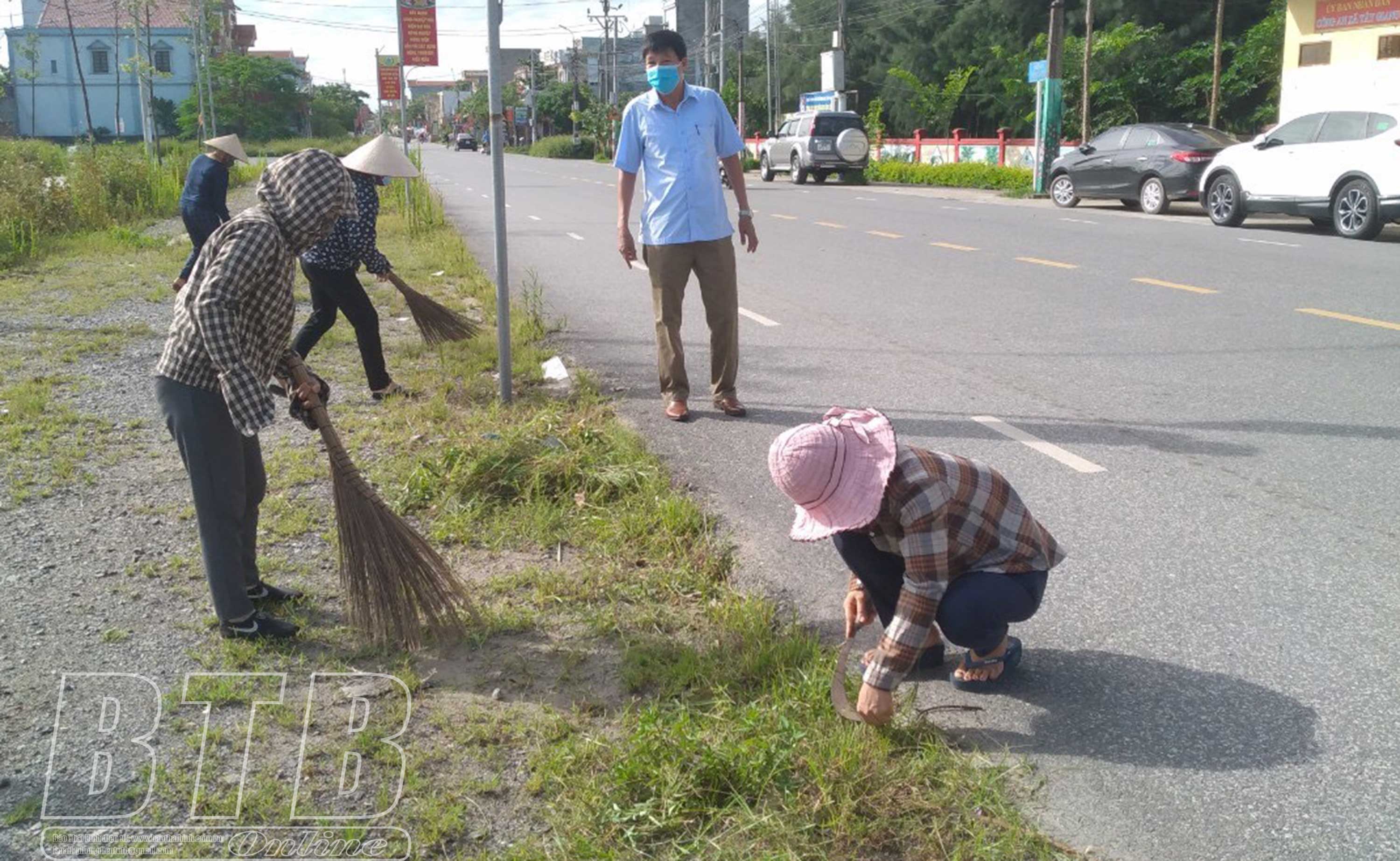 Người dân huyện Tiền Hải vệ sinh môi trường chủ động phòng, chống bệnh sốt xuất huyết.