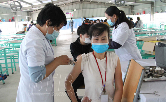 Huyện Hưng Hà tổ chức tiêm vắc-xin phòng, chống dịch Covid-19 cho công nhân trên địa bàn.