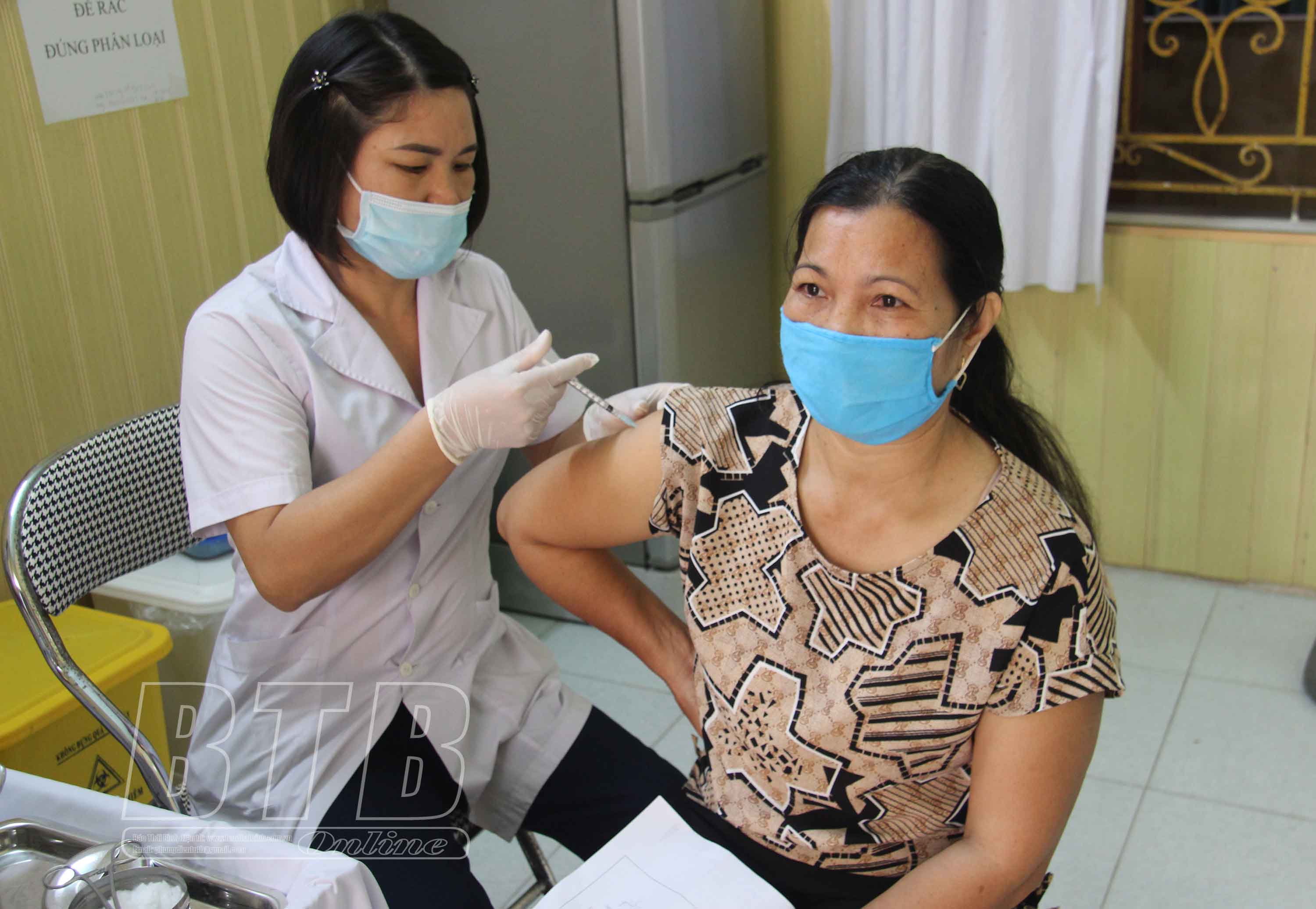 Bà Nguyễn Thị Xuyến, Giám đốc Trung tâm Y tế huyện Tiền Hải cho biết: Những ngày qua, với lượng vắc-xin được phân bổ, huyện Tiền Hải đã đẩy nhanh tiến độ tiêm vắc-xin cho người dân với phương châm vắc-xin được phân bổ đến đâu sẽ tổ chức tiêm hết ngay đến đó. Trung tâm Y tế huyện đã tham mưu UBND huyện chỉ đạo các địa phương bố trí lực lượng, chuẩn bị các điều kiện về cơ sở vật chất để đẩy nhanh tiến độ tiêm vắc-xin. Đồng thời, tích cực tuyên truyền tiêm vắc-xin phòng Covid-19 là quyền lợi đối với bản thân, là trách nhiệm đối với cộng đồng, bởi “vắc-xin tốt nhất là vắc-xin tiêm sớm nhất” để bảo vệ sức khỏe, hướng tới miễn dịch cộng đồng. Bên cạnh việc tiêm vắc-xin, huyện tăng cường tuyên truyền người dân tiếp tục thực hiện nghiêm khuyến cáo “5K” của Bộ Y tế. Để công tác tiêm vắc-xin bảo đảm an toàn, hiệu quả, huyện thực hiện đúng quy trình tiêm theo hướng dẫn của Bộ Y tế. Các trường hợp sau tiêm được theo dõi sức khỏe tại điểm tiêm ít nhất 30 phút, sau đó được hướng dẫn tiếp tục theo dõi sức khỏe tại nhà. Tại các điểm tiêm, cán bộ y tế luôn sẵn sàng, thường trực đề phòng những trường hợp có phản ứng sau tiêm nhằm bảo đảm an toàn tối đa cho người được tiêm.