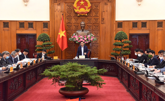 Sau khi lắng nghe các ý kiến của các chuyên gia, nhà khoa học, kết luận cuộc họp, Thủ tướng Phạm Minh Chính hoan nghênh Bộ Y tế, các cơ quan, đơn vị liên quan, các doanh nghiệp, nhà khoa học, chuyên gia đã hưởng ứng sự kêu gọi, phát động của Đảng, Nhà nước, Chính phủ, vào cuộc tích cực, chủ động trong nghiên cứu, chuyển giao công nghệ, sản xuất vaccine và thuốc điều trị trên tinh thần nhân đạo, trị bệnh cứu người.