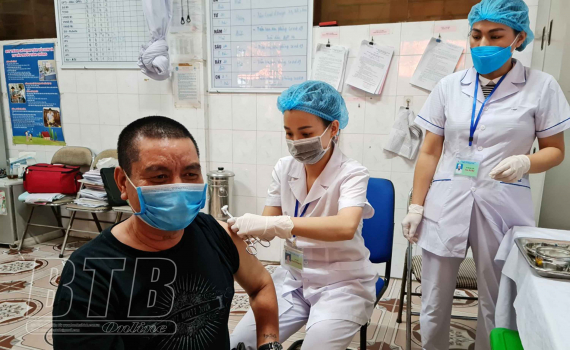 Người dân phường Đề Thám tiêm mũi 2 vắc-xin phòng Covid-19.