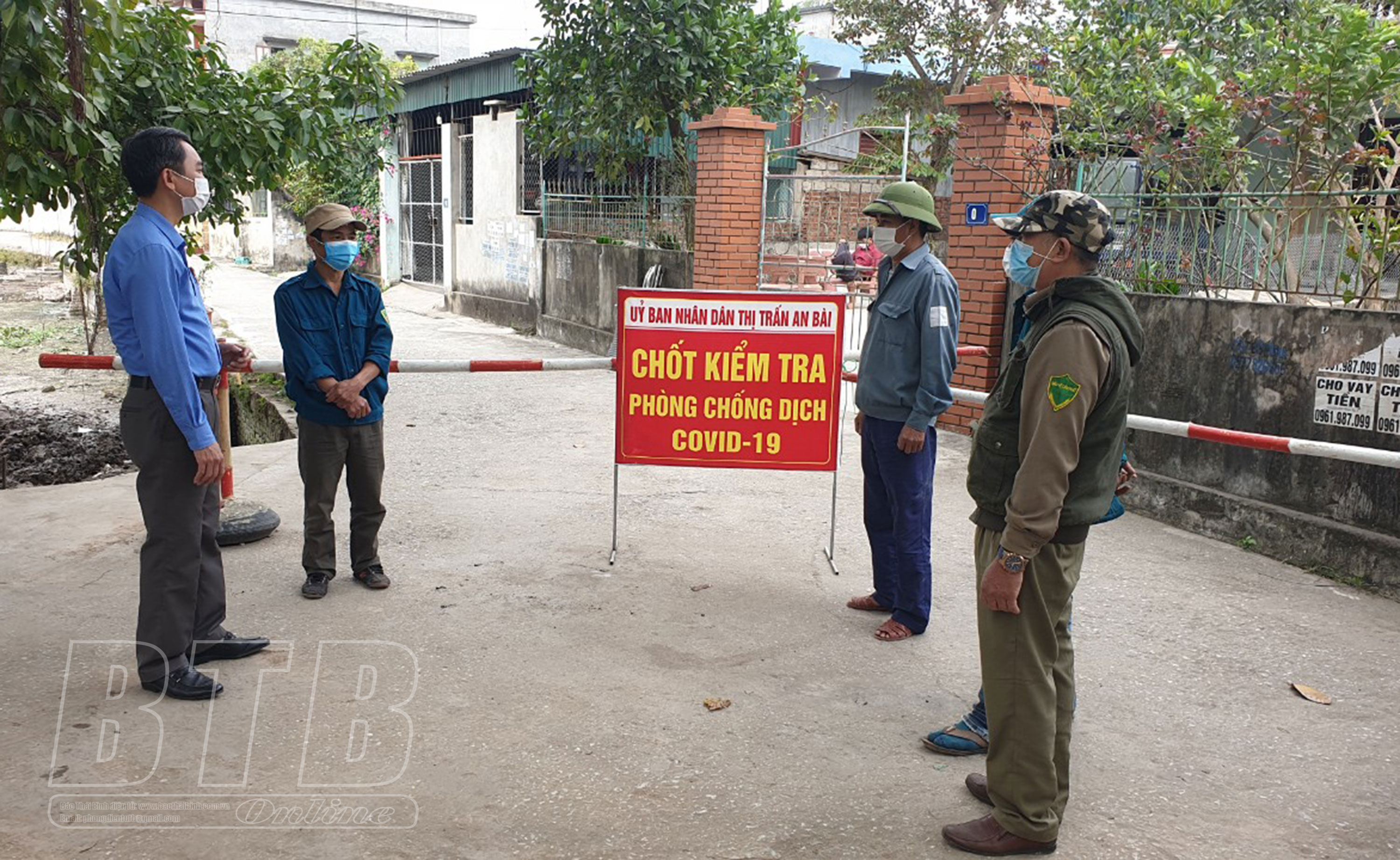 Chốt kiểm soát dịch Covid-19 thị trấn An Bài lập chốt kiểm soát tại tổ dân phố số 1 để kiểm soát người ra vào địa bàn.