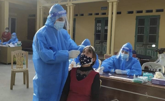 Test nhanh Covid-19 cho người dân huyện Đông Hưng.