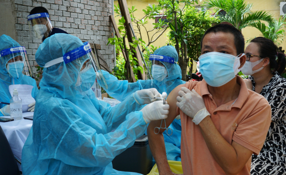 Tỷ lệ bao phủ ít nhất 01 liều vaccine là 99,7% và tỷ lệ tiêm đủ liều cơ bản là 91,3% dân số từ 18 tuổi trở lên. Theo khu vực, tỷ lệ này lần lượt ở miền Bắc là 96,6% và 89,1%; miền Trung là 96,7% và 89,2%; Tây Nguyên là 98,1% và 85,9%; miền Nam là 100% và 92,9%.