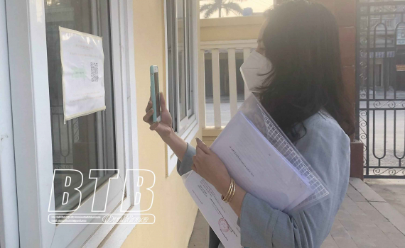 Người dân thực hiện khai báo y tế khi đến làm việc tại các cơ quan, đơn vị.