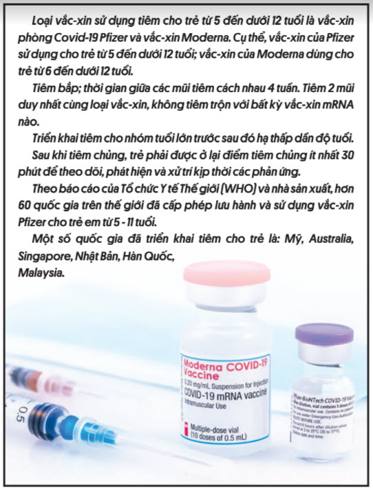 Mới đây, tại hội nghị tập huấn toàn quốc về công tác tiêm vắc-xin phòng Covid-19 cho trẻ từ 5 đến dưới 12 tuổi với các địa phương trên cả nước, Thứ trưởng Bộ Y tế Nguyễn Trường Sơn cho biết: Việc tiêm chủng cho nhóm trẻ từ 5 đến dưới 12 tuổi rất quan trọng, được Bộ Y tế xác định là nhiệm vụ trọng tâm trong năm 2022. Hiện Bộ Y tế đã chỉ đạo các đơn vị thận trọng từng bước, làm việc khoa học và khách quan trên cơ sở tham khảo chương trình tiêm của các nước, các khuyến cáo của WHO, CDC Hoa Kỳ... Theo các chuyên gia, nhà khoa học, khi trở lại trường học, việc lây nhiễm Covid-19 của trẻ đã tăng lên do biến chủng Omicron. Mặc dù trẻ ở lứa tuổi này mắc Covid-19 phần lớn đều có mức độ bệnh nhẹ nhưng cũng ảnh hưởng tới sức khỏe. Bên cạnh đó, cũng đã có trường hợp gặp phải biến chứng khi mắc Covid-19 như: viêm cơ tim, hội chứng viêm đa hệ thống ở trẻ. Do đó, việc tiêm vắc-xin là rất cần thiết, bảo vệ trẻ trước đại dịch Covid-19.