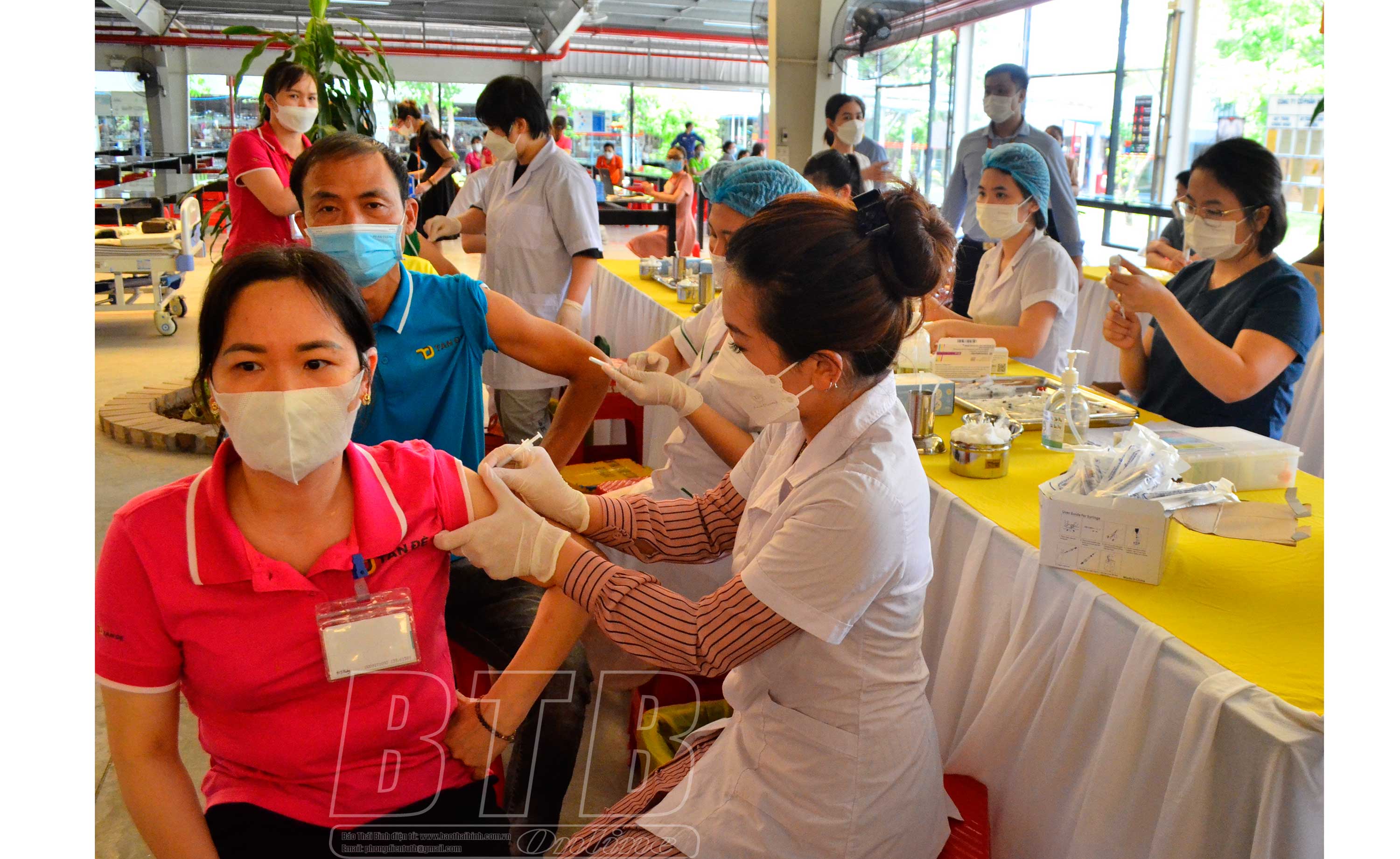 Địa điểm tổ chức tiêm chủng là các nhà xưởng rộng, thông thoáng trong các nhà máy của Công ty Tân Đệ. Đặc biệt, tại điểm tiêm được bố trí nhiều bàn tiêm nên đã giải quyết nhanh chóng các trường hợp sau khi được tư vấn, kiểm tra sức khỏe giúp tiến độ, thời gian tiêm chủng diễn ra nhanh, không ùn ứ tại khâu chờ tiêm.