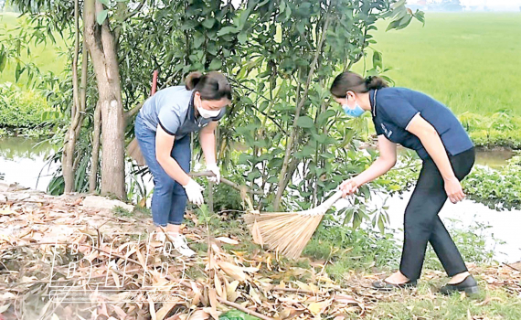 Người dân xã Vũ Quý (Kiến Xương) tham gia vệ sinh môi trường.