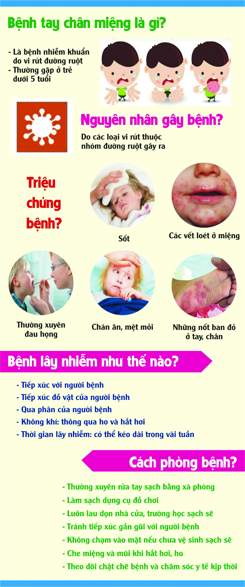 Khi đó, phụ huynh cần đưa trẻ đến khám tại các cơ sở y tế. Các bác sĩ sẽ phân loại mức độ bệnh để có các biện pháp xử lý sớm, tránh các biến chứng nặng. Mùa hè, các gia đình cần thường xuyên vệ sinh cho trẻ, vệ sinh tay bằng xà phòng. Người chăm trẻ cũng cần vệ sinh tay của chính mình bởi người lớn có thể mang mầm bệnh, không biểu hiện bệnh rồi lây sang trẻ. Về dinh dưỡng, trẻ cần được bổ sung các thực phẩm giàu dinh dưỡng, duy trì các chế độ ăn phù hợp, ăn chín, uống chín, tránh tình trạng sử dụng nhiều đồ ăn nhanh dễ bị rối loạn tiêu hóa. Bên cạnh đó, các gia đình cần thường xuyên vệ sinh đồ chơi, tránh cho trẻ chơi tập trung khi nghi ngờ có trẻ mắc bệnh vì bệnh tay chân miệng chủ yếu lây qua đường tiêu hóa, nốt phỏng, dịch tiết ở niêm mạc họng.