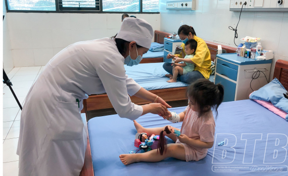 Bệnh nhi mắc tay chân miệng điều trị tại Bệnh viện Nhi Thái Bình.