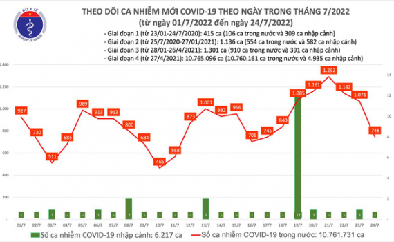 Ngày 24/7, thêm 748 ca mắc COVID-19 mới