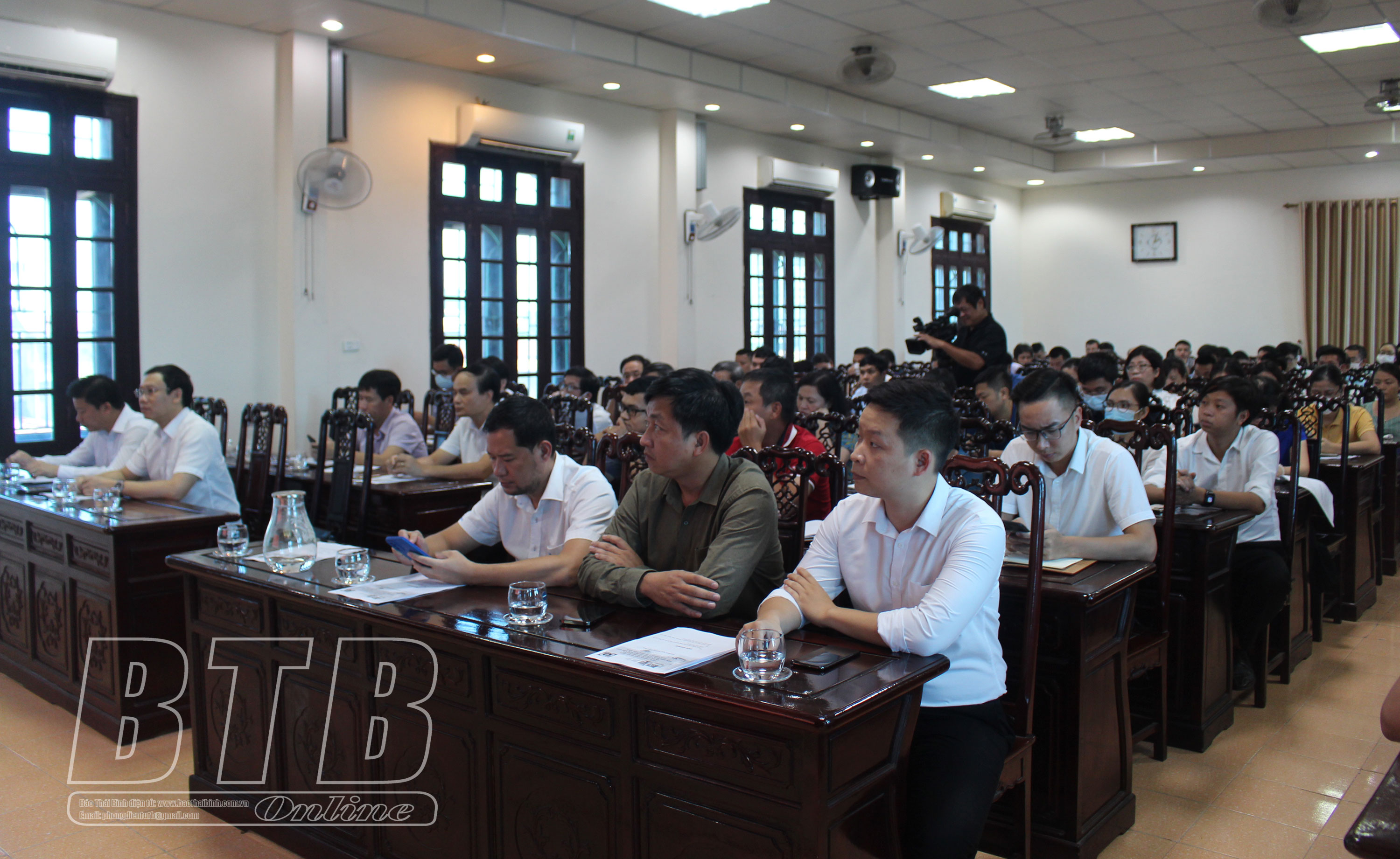 Các đại biểu đã nghe báo cáo hiện trạng ứng dụng công nghệ thông tin và kế hoạch chuyển đổi số đến năm 2025, định hướng đến năm 2030 của ngành y tế Thái Bình.