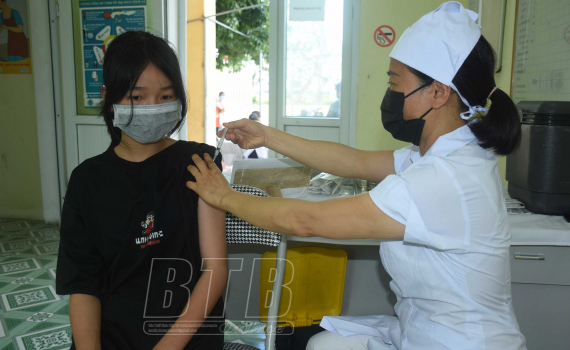 Học sinh huyện Kiến Xương được tiêm vắc-xin phòng Covid-19.