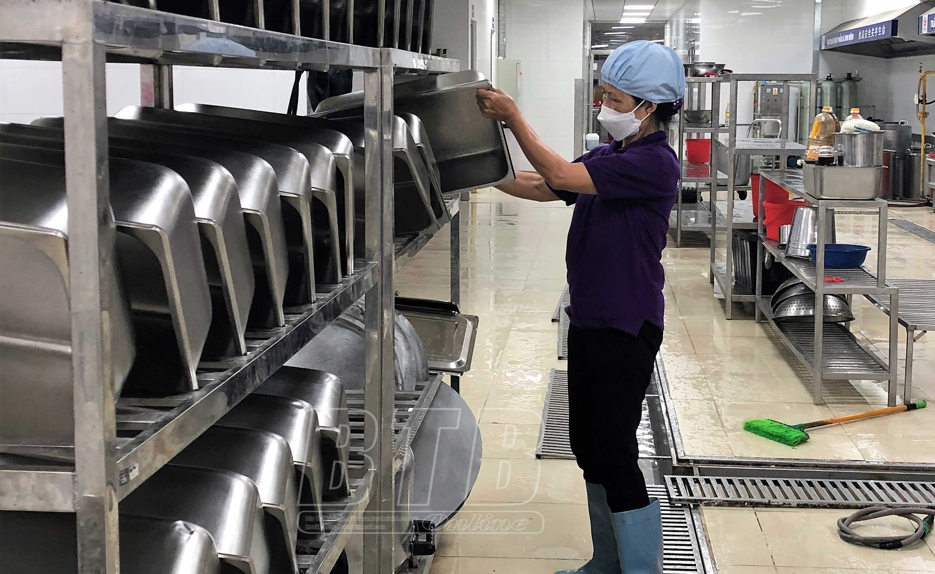 Bếp ăn Công ty Tân Đệ bảo đảm an toàn vệ sinh thực phẩm.