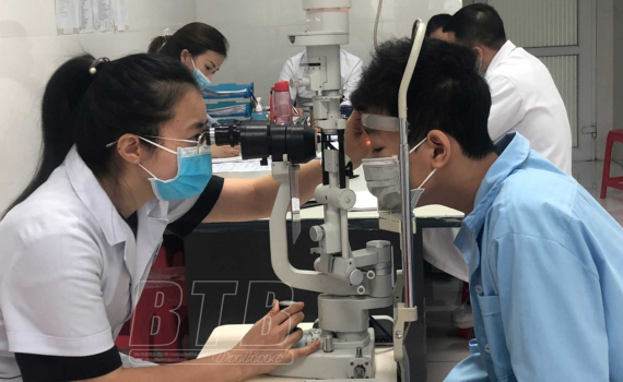 Bệnh nhân viêm kết mạc điều trị tại Bệnh viện Mắt Thái Bình.