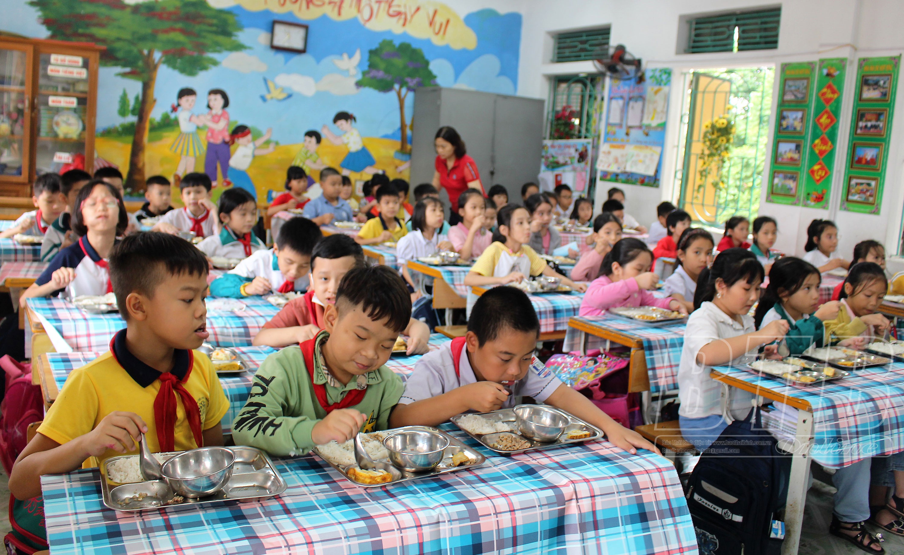 Học sinh Trường Tiểu học Trần Lãm (thành phố Thái Bình) ăn bán trú.